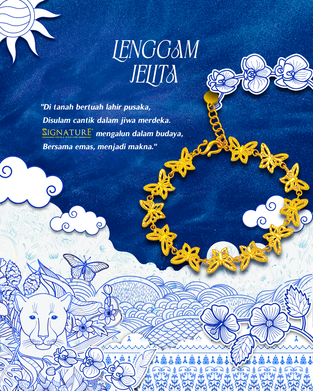 Dengan tema The New Heritage, Signature menghadirkan pengalaman berbelanja perhiasan yang menggabungkan tradisi budaya Melayu dan kemewahan emas murni 24K. Sebuah persembahan istimewa untuk merayakan kemerdekaan, warisan, dan kecantikan yang abadi.