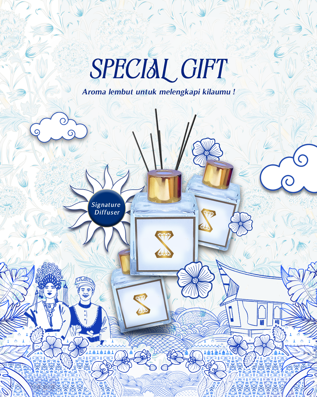 Setiap pembelian akan dilengkapi dengan Signature Diffuser yang menghadirkan aroma lembut nan elegan untuk mempercantik momen berharga.