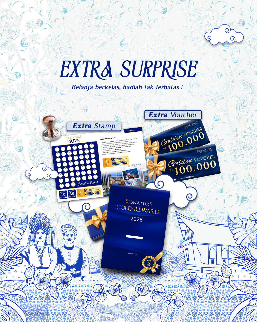 Signature Episode VIII – The New Heritage hadir dengan nuansa kemerdekaan yang dipadukan dengan budaya Melayu, menghadirkan kilau emas 24K yang tak lekang oleh waktu. Membawa pesan “Biarlah kilau cantikmu terus abadi hingga generasi berikutnya”, promo kali ini mengajak pelanggan untuk merayakan warisan nusantara dengan cara yang elegan dan penuh makna.